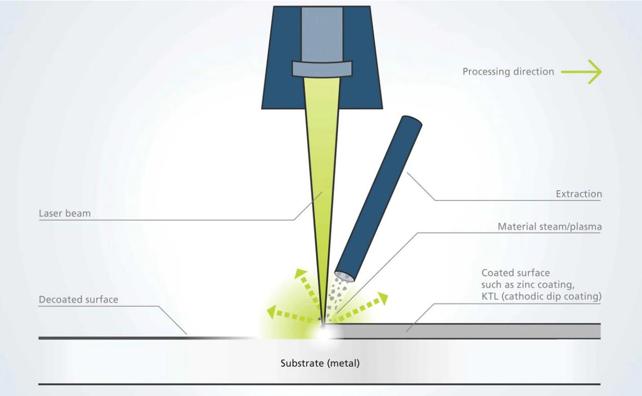 Laser paint removal or ablation is a process during which functional layers are selectively removed from a surface using laser radiation (usually pulsed). The absorbing material is heated by laser energy and evaporates or sublimates.