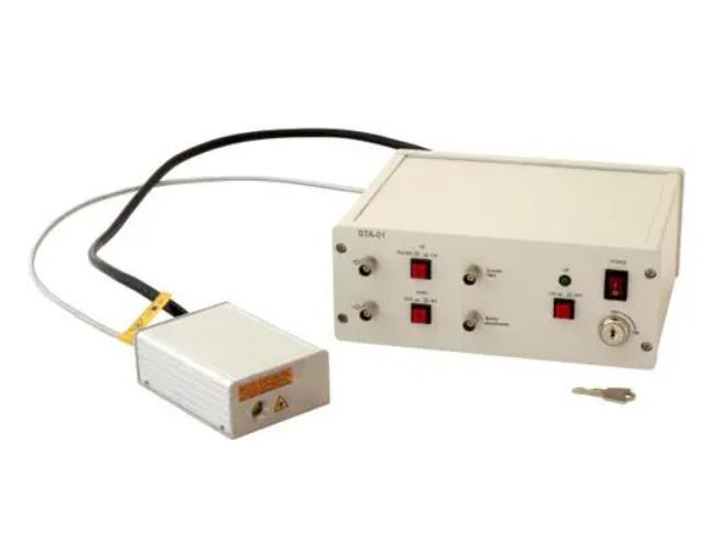 The STANDA-Q10 is an actively Q-switched diode-pumped Nd:YAG laser operating at a wavelength of 1064 nm. The laser delivers nanosecond (0.9-3 ns) pulses with a near transform limited spectral structure (linewidth < 3.7 pm) emitted at repetition rates up to 10 kHz with extremely low timing jitter (<350ps, PtP), and single pulse energies as high as 70 µJ in a TEM00 beam (M2 < 1.3). The modified STA-01 controller is a convenient device for operating the STANDA-Q10 laser head. Intuitive GUI (JLV-SOFT9) allows to control and to monitor over 100 various parameters via USB or RS-232 interface. There are TTL inputs for precisely synchronized laser pulses and analog output that produces signals to trigger customer's electronics (pulse rise time ≤2.5ns). The main laser parameters can be modified to better fit the customer's application. Systems providing 0.5-3ns laser pulses (customer should specify the particular pulse width) with single pulse energy up to 0.5 mJ are available upon request. Spectral and spatial beam characteristics allows efficient fundamental frequency conversion via SHG and THG processes. Our standard harmonic generators can be installed into a laser head to obtain 532nm and 355nm laser radiation. Consult your Standa representative to find out the parameters of VIS and UV laser models. OEM version of STANDA-Q10 laser system is also available. OEM controller needs 7.5 V DC power supply and has USB or RS-232 interface to communicate with a PC. The controller appearance will be similar to our STA-01-OEM control unit.