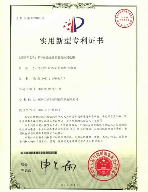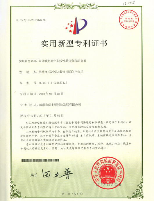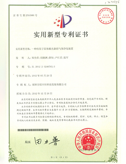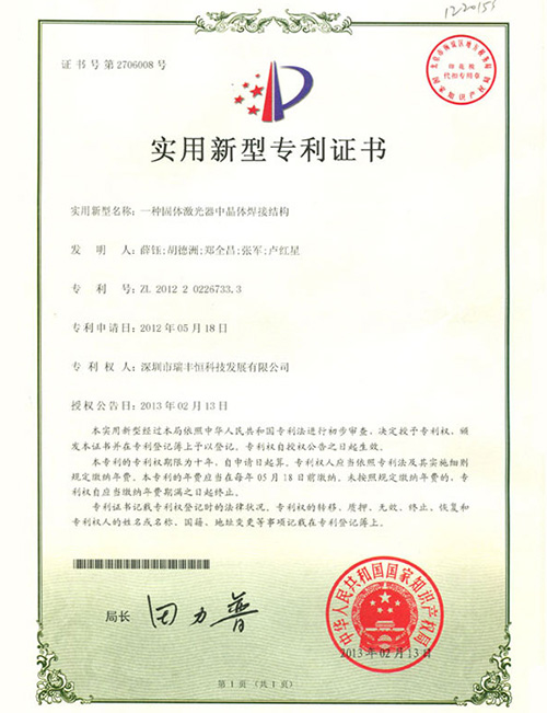 RFH LASER Utility model patent certificate-1