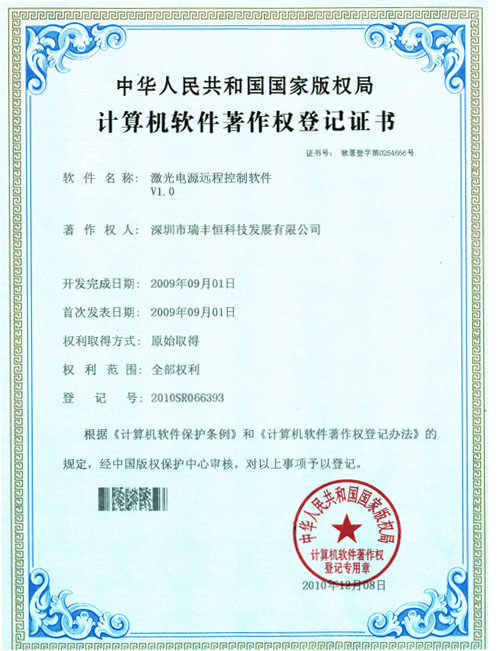 RFH LASER Software copyright certificate-6