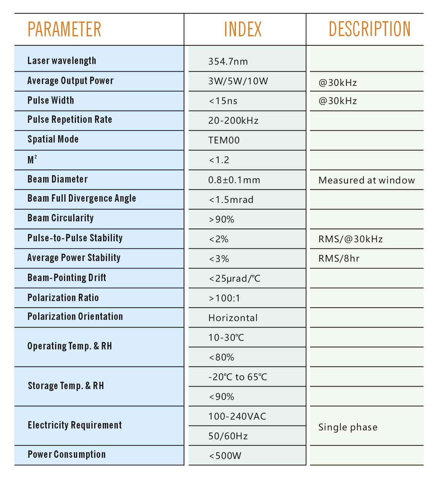 2. Exceptional beam quality (M²<1.2) ,absolutely assured in all repetition rates; relatively short pulse width <15ns@30 with little heat transfer to surrounding material; perfect beam spot quality(Beam Circularity>90%)