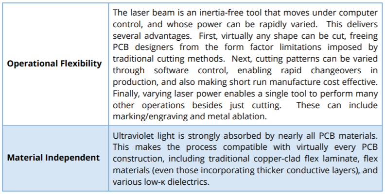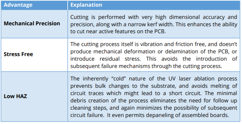Table 1. Primary Characteristics and Advantages of UV Laser-Based PCB Cutting